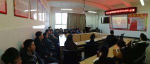 2018年12月18日上午10点,汽车与交通学院全体无课教工党员、员工党员在经管楼311集中观看庆祝改革开放40周年大会直播。