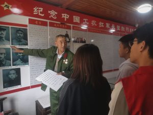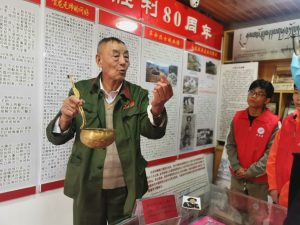 云梦队走入了香格里拉独克宗甸寨卡红色居民文化陈列馆,访谈红色人物——赵嘉林。八十多岁的赵老先生告诉云梦队,他创建独克宗甸寨卡红色居民文化陈列馆是为了把红军长征的精神和党的优秀事迹延续下去。他给云梦队讲述了红军长征路过香格里拉时,父亲赵阿印克服重重困难,为红军筹措20000余斤粮食的故事,以及红军与香格里拉各民族百姓之间的鱼水相融之情。“一张委任令,一枚五星’奖章‘,一只珍贵的肾形换药弯盘。”赵老先生和云梦队的队员在博物馆中与一件件见证历史的文物进行了一场深刻的对话。