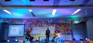 晚会以热情的开场舞拉开序幕,在精彩的小品、英语舞台剧、歌曲串烧、舞蹈表演和暖场游戏中走向高潮,以老师和观众的意犹未尽收尾。同学们在舞台上载歌载舞,尽情表演,赢得了老师们和观众们热烈的掌声。