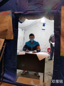 2016级机械设计制造及其自动化专升本团支部员工,共青团员,云南镇雄人,疫情爆发后,主动到云南省昭通市镇雄县南台街道办事处西正街社区进行疫情防控志愿服务,从1月30日开始到2月末,一直协助社区及政府工作人员进行疫情防控的宣传工作,在小区卡点对进出车辆和人员进行登记。