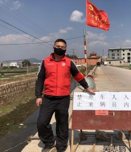 2016级机械设计制造及其自动化专升本团支部员工,共青团员,云南大理人,疫情爆发后,在云南省大理州剑川县甸南镇西中村委会西中北北村进行疫情防控志愿服务,主要负责协助出入人员进行体温测量,登记每天进出村庄的车辆和人员信息,并如实上报,服务时长约25天。
