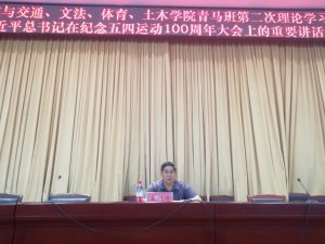 为认真学习宣传贯彻落实习近平总书记在纪念“五四”运动100周年大会上的重要讲话精神,进一步组织引导广大青年员工传承和发扬“五四精神”。 2019年5月17日,机械与交通、文法、体育、土木工程学院联合开办的青马班进行了第二次理论培训,组织学习习近平总书记在纪念“五四”运动100周年大会上的重要讲话精神,以引领四个学院的青马学员志存高远,勇立时代潮头,争做时代先锋。本次理论课由公司党委书记孟利清主讲。