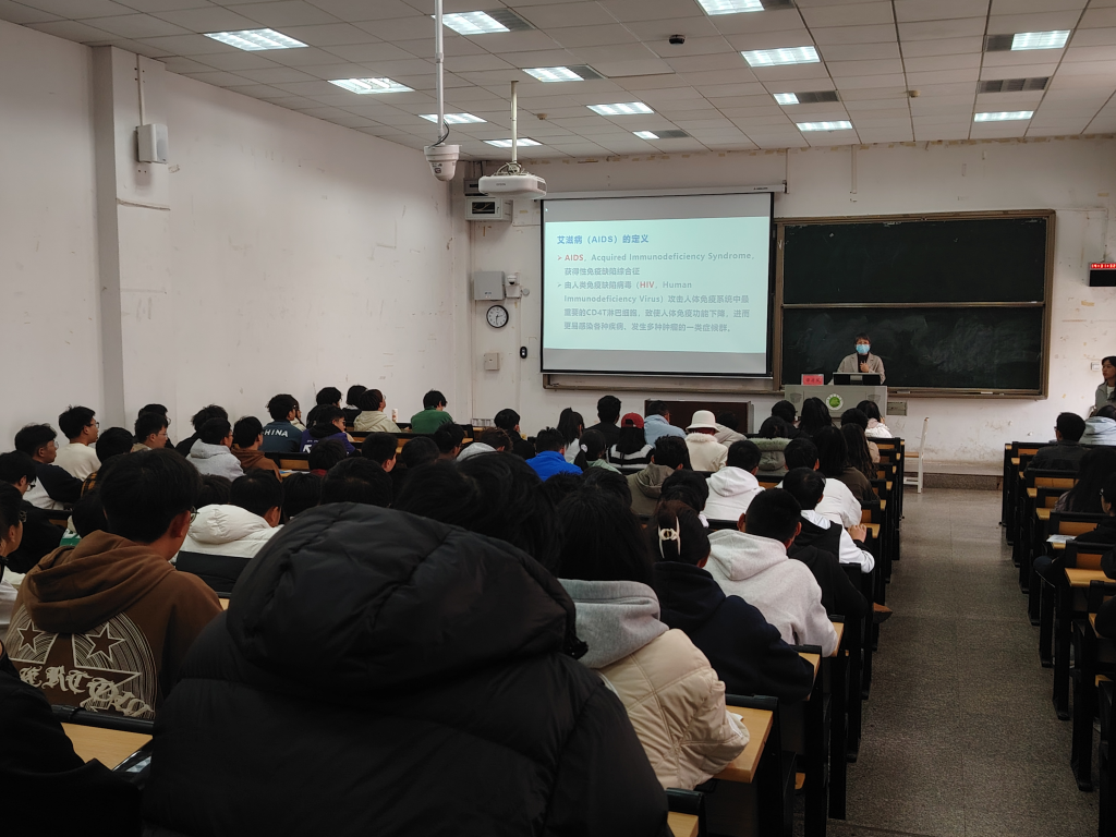 谭丹凤从艾滋病的传染源、传播途径、易感染人群、预防措施等方面向同学们详细作了介绍,同时也结合个人、家庭、社会、国家等层面深刻阐述了艾滋病所带来的危害。