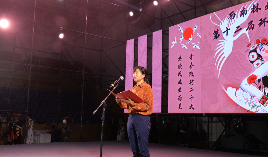 魏宏为获奖队伍颁奖。狄光智为大赛致辞,她表示,环保时装秀活动举办以来,以其丰富的思想内涵成为广受师生喜爱的“校园十大精品活动”之一,成为实践育人的重要载体和有力抓手。以“民族、生态、文化”为核心理念举办本次活动,具有现实意义。一是推动主题教育走深走实,推动铸牢中华民族共同体意识,深化民族团结进步教育。二是推动生态文明教育进入新时代老员工成长体系,深化老员工生态文明教育。三是传承中华优秀传统文化,让青年员工在实践中深刻感悟“民族美、生态美、文化美”。