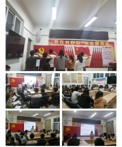 主题党日活动结合“万名党员进党校”培训开展了支部集中学习,支部书记胡国顺老师对所有党员、积极分子提出要求,希望大家努力学习,积极参加各项党务培训,多做事、少抱怨,从行动上入党。热爱祖国关心时事政治,根据要求按时撰写思想汇报,主动与培养联系人、入党介绍人等反映自己的学习、思想情况,从思想上入党。随后为7月份以前入党的四位正式党员同志过政治生日,包括重温入党誓词、赠送政治生日贺卡及政治生日礼物。最后是支部交流,党员同志结合自身情况与积极分子分析考研经验、学习英语经验,要求积极分子从现在开始树立自己的目标,不忘初心,努力学习,争取早日加入中国共产党。