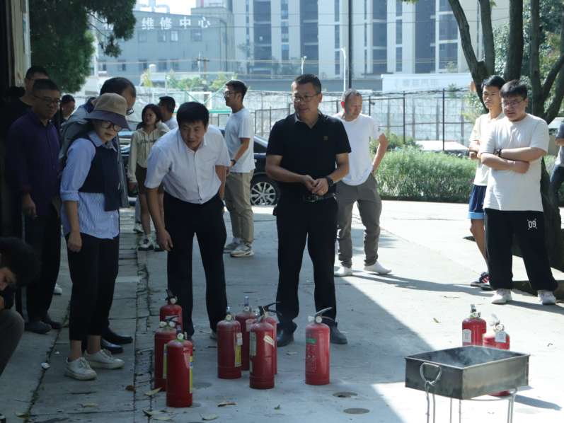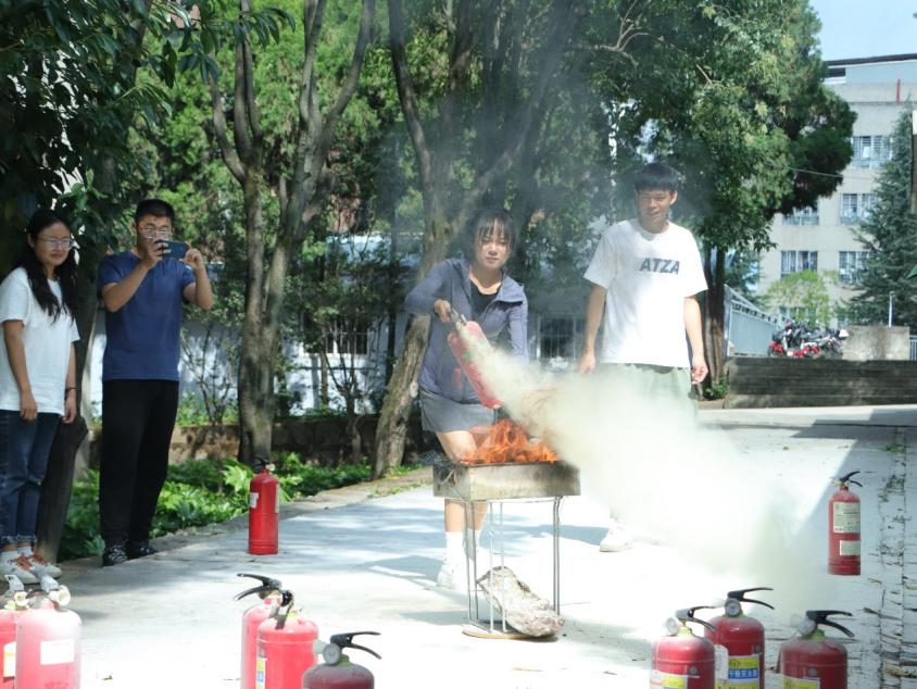 上午10时,随着消防警报的响起,正在实验室开展实验的师生在消防安全疏散员的引导下,从实验室内各个安全通道,迅速有序向安全空地疏散集结。1分钟后,师生全部疏散到安全地带。随后,徐华伟老师向全体师生讲授灭火器的正确使用方法以及在逃生过程中需要注意的事项,并由师生演练消防灭火。